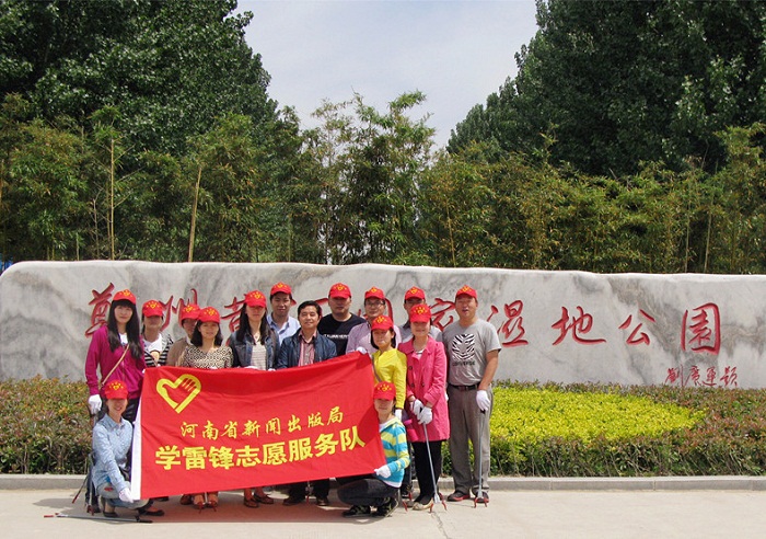 為大力踐行社會主義核心價值觀,引導局直系統(tǒng)黨員干部帶頭“做文明人、辦文明事”,五一小長假后的第一天,省新聞出版局15名青年志愿者在局直機關黨委專職副書記張培明同志的帶領下,一起到黃河濕地公園開展了“傳承五四薪火•志愿潔凈家園”清撿垃圾活動。經和有關工作人員溝通,我們將活動的重點區(qū)域定在平日清潔人員疏于打掃的大道附近的草叢樹林里。志愿者們領到工具后,兩人一組,三人一隊,發(fā)揚不怕臟、不怕累的精神,默契配合,清理的垃圾裝滿了數(shù)十個蛇皮袋。