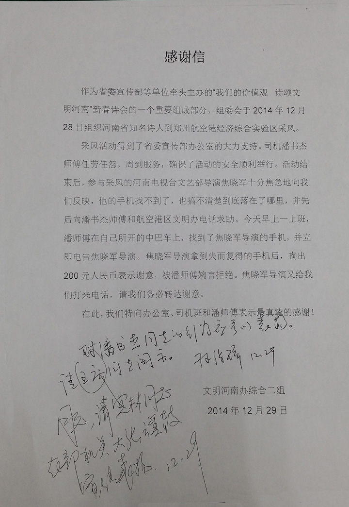 在鄭州航空港經濟綜合試驗區(qū)活動中受表揚