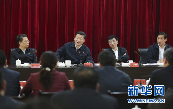 3月17日至18日,中共中央總書記、國家主席、中央軍委主席習(xí)近平在河南省蘭考縣調(diào)研指導(dǎo)黨的群眾路線教育實(shí)踐活動(dòng)。這是3月18日,習(xí)近平聽取蘭考縣教育實(shí)踐活動(dòng)情況匯報(bào),并發(fā)表重要講話。(新華社記者 丁林 攝)
