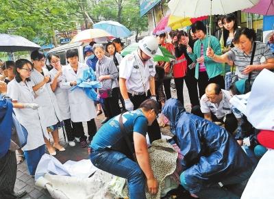“快!找個衣服給孩子蓋住?!辈恢l喊了一聲。由于下雨天冷,光溜溜的小家伙凍得渾身發(fā)紫。話音剛落,沿街門店的商戶楊女士健步如飛,回到店里把自家孩子的毛毯拿過來,熱心市民有的還把衣服脫掉……毛巾、毛毯、衣服從人縫里送進(jìn)來,一層又一層地裹住嬰兒。當(dāng)120急救車趕到現(xiàn)場,眾人把產(chǎn)婦抬上了救護(hù)車,所有人長長地出了口氣。