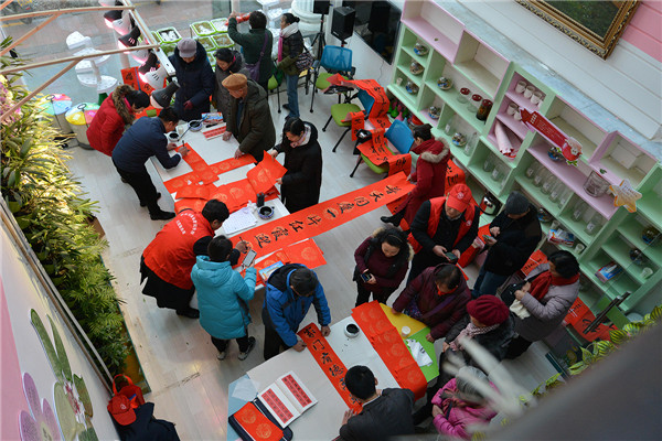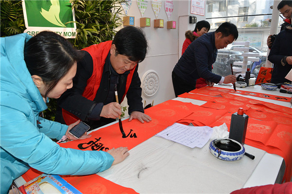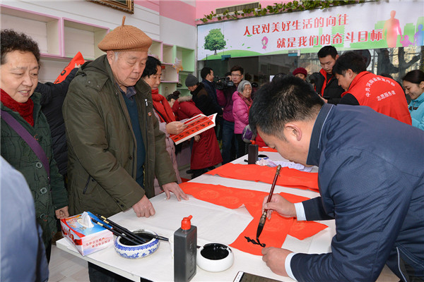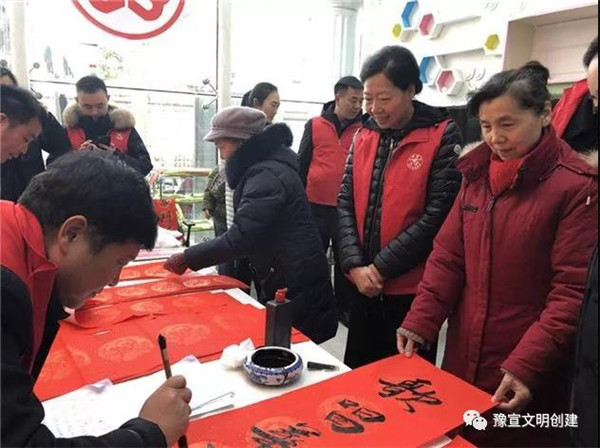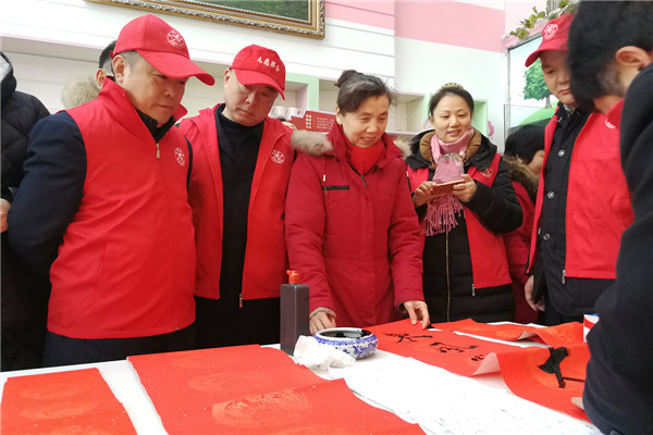 在“迎新春、送春聯”活動現場,書法家們揮毫潑墨,為廣大黨員群眾書寫春聯,吸引了多名書法愛好者現場求教;黨員群眾們拿著剛寫好的還飄著墨香的春聯,欣賞、贊嘆、感謝聲不絕于耳。